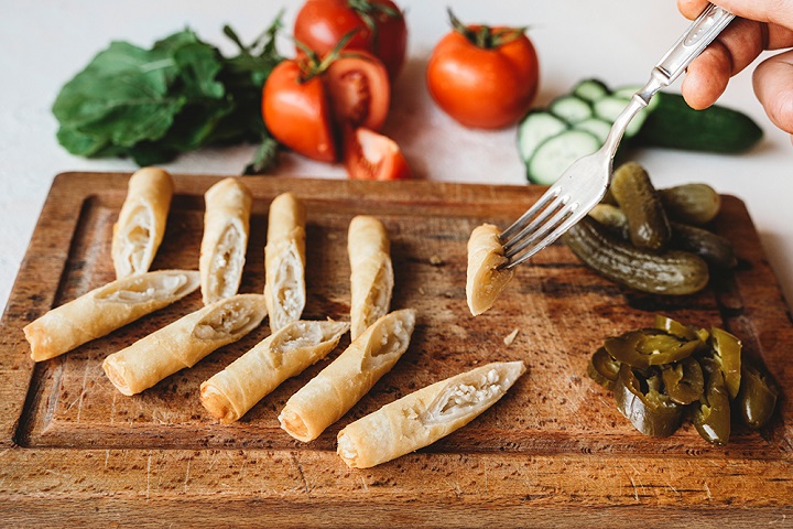 Pastırma, kaşar, el açması yufkadan (4 adet)